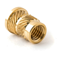 The headed brass Heatfit range of threaded inserts for plastic injection mouldings are installed in drilled or moulded-in holes using heat staking or ultrasonic. With opposing herringbone knurl on the outside, this type of knurl allows for a greater retention in the plastic.